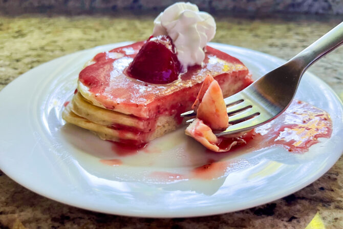 It’s strawberry season here in the Midwest and Eckert’s has the best around! They host an annual Strawberry Festival, and our family enjoyed strawberry picking, carnival rides, and brunch in their Cider Shed. We brought home an abundance of strawberries back home and made the most delicious, simple strawberry syrup this weekend.
